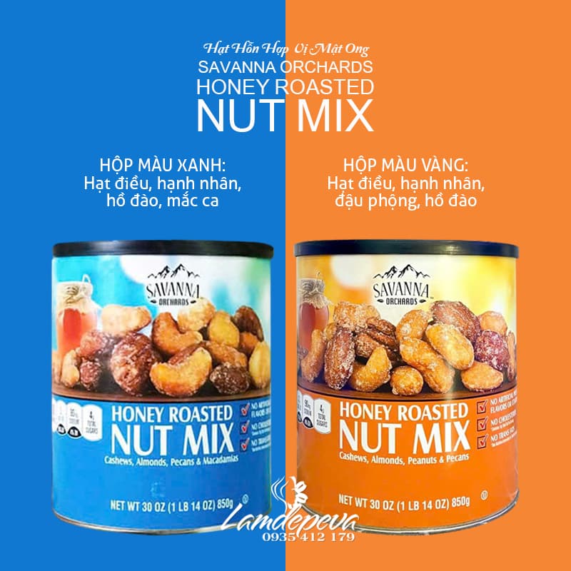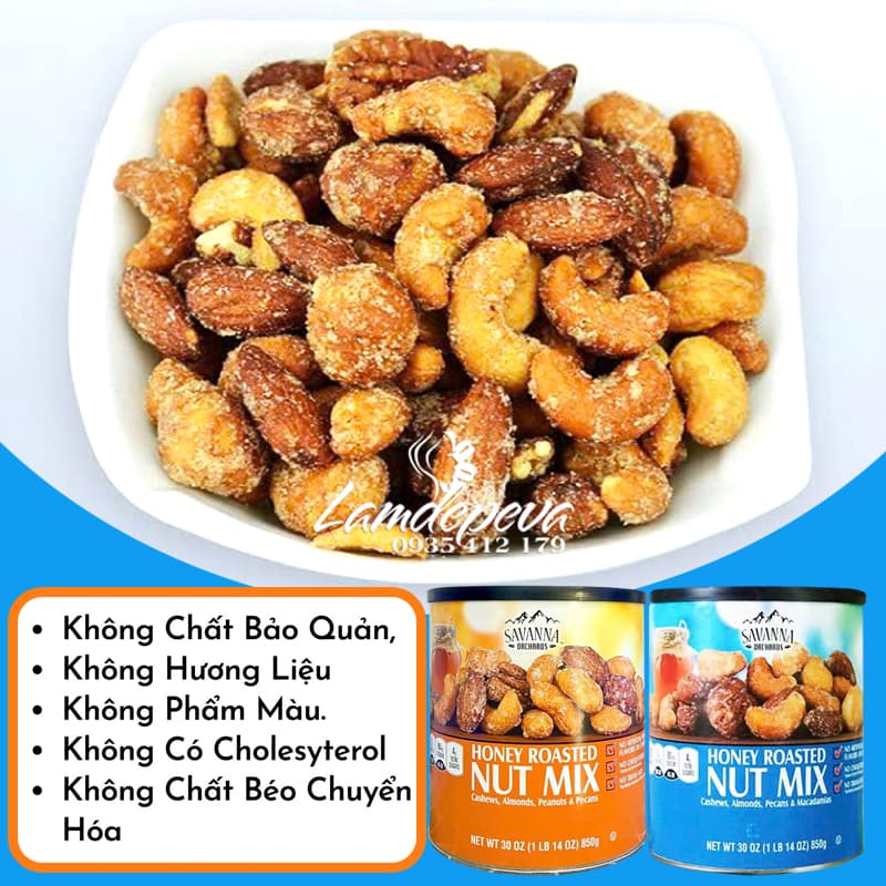 Hạt hỗn hợp Savanna Orchards Honey Roasted Nut Mix của Mỹ và loại hạt dinh dưỡng chất lượng cao cấp bổ sung nhiều dưỡng chất, vi khoáng, chất xơ lành mạnh.
