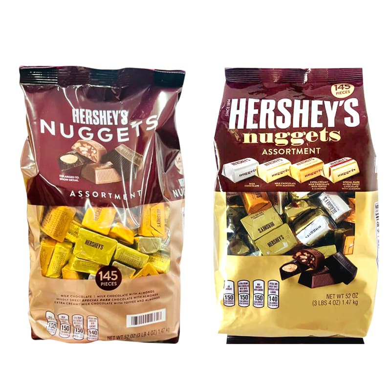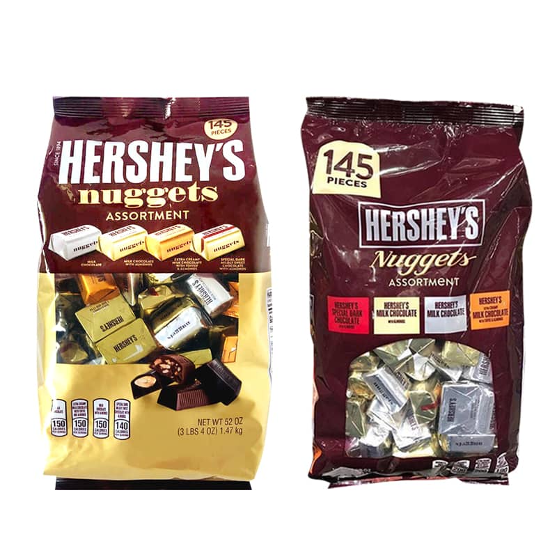 -Mỗi gói Chocolate Hershey Nuggets gồm có 145 cái. Mỗi vị có một màu riêng dễ nhận biết.