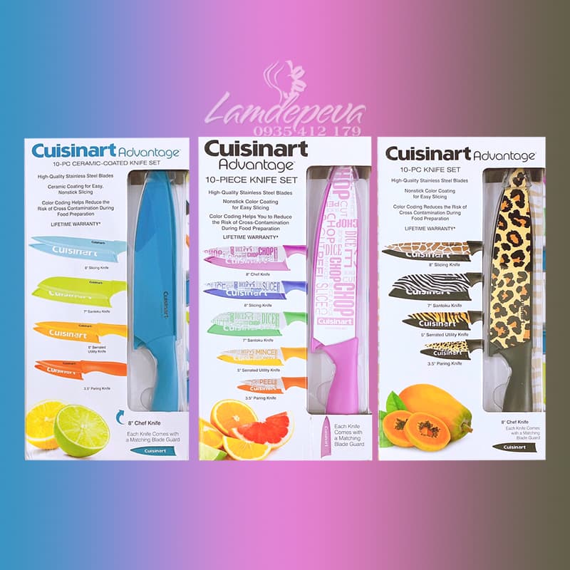- Bộ 5 dao Cuisinart đang có nhiều mẫu, nhiều màu sắc độc đáo tại đại lý Eva Store. Hàng cam kết chính hãng, chất lượng tốt đến tận tay quý khách hàng. Bạn được kiểm tra hàng trước khi nhận.