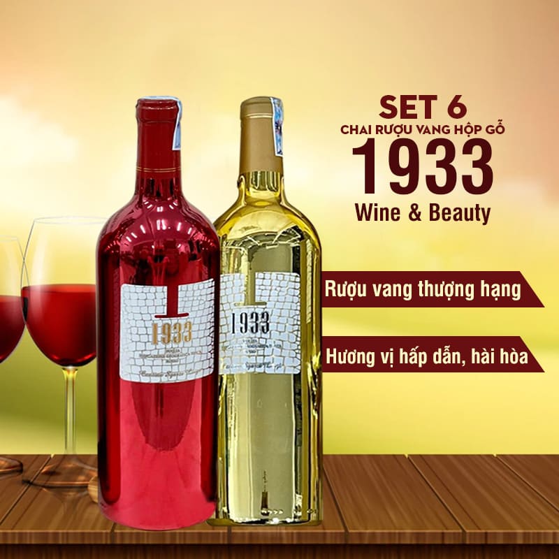 Set 6 chai rượu vang Ý 1933 hộp gỗ được ưa chuộng tại nhiều nước trên Thế giới. Eva Store chúng tôi cam kết hàng có bill chuẩn, được ship cod tận nơi, bao bọc cẩn thận, đảm bảo chất lượng tốt nhất đến tận tay quý khách hàng.