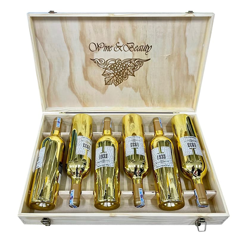 Set 6 chai rượu vang Ý 1933 hộp gỗ Wine & Beauty