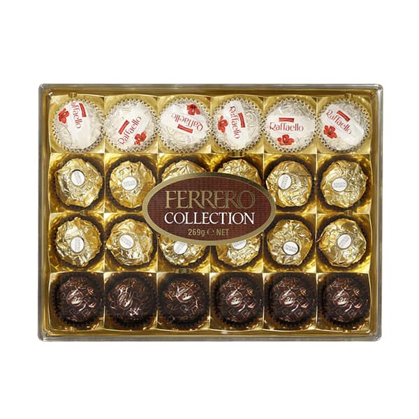 - Socola Ferrero Collection 24 viên Mix 3 hương vị ngon tuyệt vời được thiết kế hộp cực kỳ sang trọng. Màu sắc hài hòa, sang trọng chắc chắn sẽ làm hài lòng người nhận.