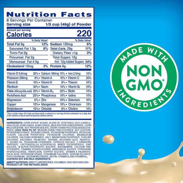 ➤ 1/3 cốc sữa pediasure grow & gain (tương đương với 38g hoặc 35ml) hòa tan với 3/4 cốc sữa tươi (tương đương với 80ml sữa) sẽ cung cấp hàm lượng protein tương đương với 2 quả trứng gà thường, lượng Vitramin A tương đương như khi uống một cốc nước ép đào tươi và hàm lượng vitamin C rất cao tương được với 1 quả quýt. Bên cạnh đó một ly sữa pedisure được pha đúng cách còn cung cấp hàm lượng canxi như là một phần ăn no mát của người Mỹ.