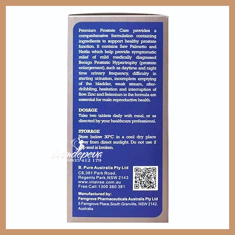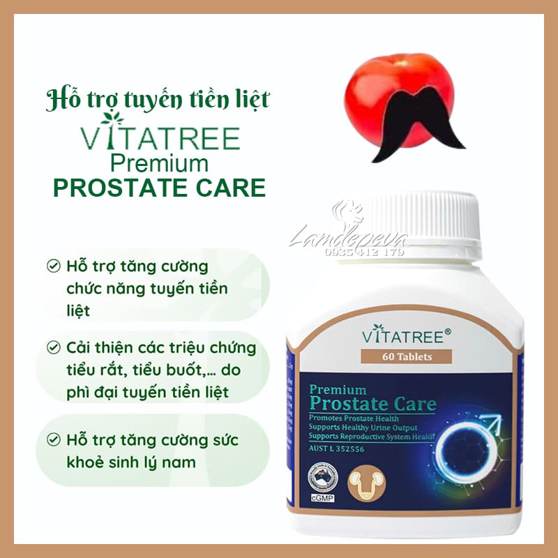 => Vitatree Premium Prostate Care là một sản phẩm hỗ trợ chức năng tiền liệt tuyến cực kỳ hiệu quả và được ưa chuộng tại Úc. Viên uống Prostate giảm các chứng tiểu rắt, bí tiểu, tiểu đêm, tiểu nhiều lần,... Đồng thời, làm giảm sự gia tăng kích thước của tuyến tiền liệt, hỗ trợ phòng ngừa các bệnh nghiêm trọng như ung_thư tuyến tiền liệt.