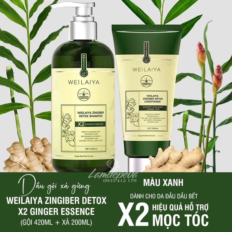 Dầu gội xả gừng cao cấp Weilaiya Zingiber Detox X2 Ginger Essence (gội 420ml + xả 200ml)