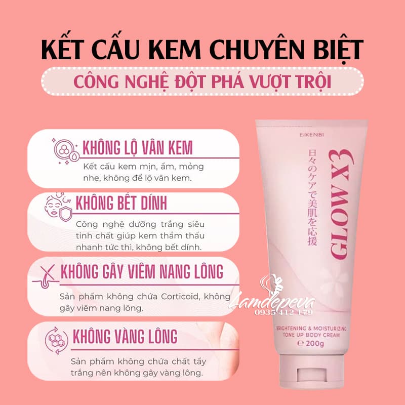 Ưu điểm của dưỡng thể trắng da Glow X3 Eikenbi