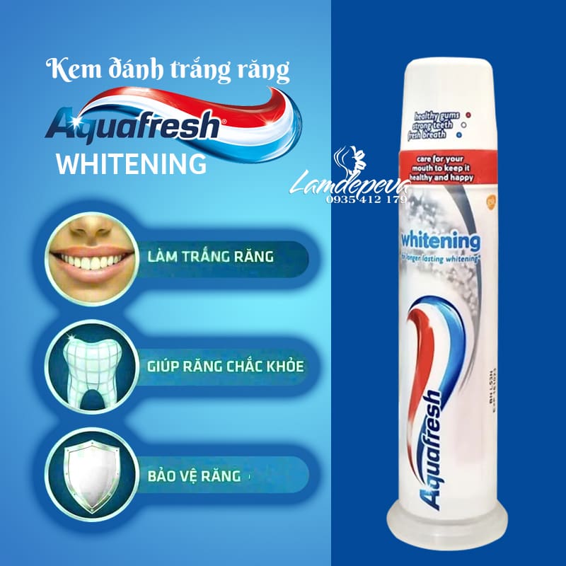 ✔ Ngoài chăm sóc răng miệng, ngừa sâu răng, và các bệnh lý thường gặp thì Aquafresh Whitening còn có công thức trắng răng gấp đôi. Nhờ đó, kem đánh răng có thể làm giảm ố vàng, ngừa cao răng, làm trắng răng để nụ cười tự tin tỏa sáng.