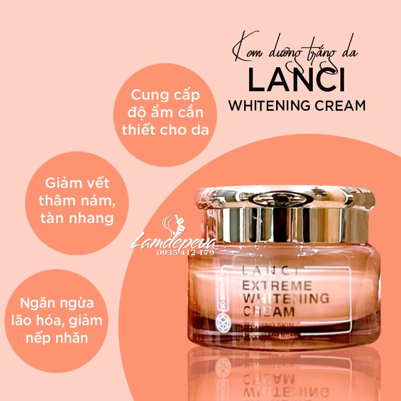 - Kem dưỡng trắng da Lanci Whitening Cream Hàn Quốc giá tốt nhất tại đại lý Eva Store. Chúng tôi cam kết chất lượng sản phẩm chính hãng, được kiểm hàng trước khi nhận, thanh toán trực tiếp.