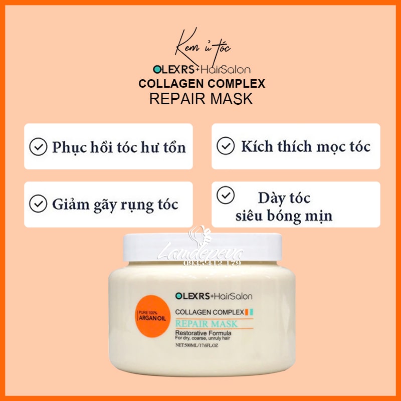Kem ủ tóc Olexrs Argan Oil Collagen Complex Repair Mask 500ml chính hãng nhập khẩu từ Anh Quốc - Hỗ trợ phục hồi hư tổn, làm mềm mượt tóc