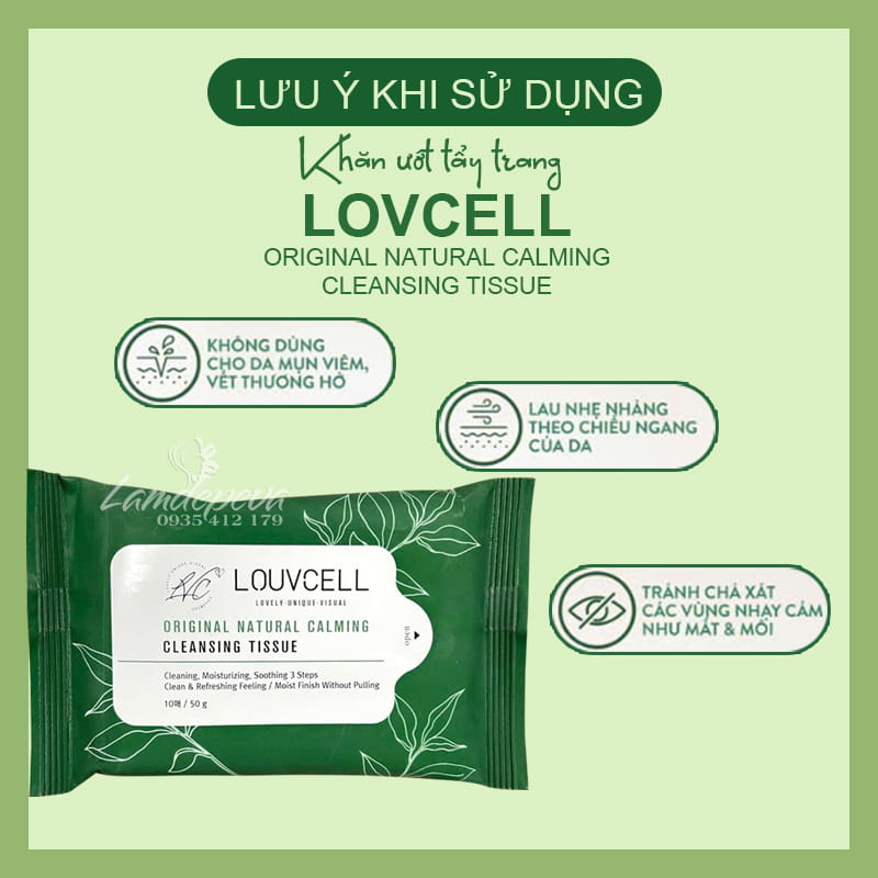 Gần đây, một sản phẩm của Louv Cell đang làm mưa làm gió và nhận được hàng nghìn review khen ngợi đó là Khăn ướt tẩy trang Louv Cell Original Natural Calming Cleanser. Khăn ướt có khả năng làm sạch cả lớp trang điểm và bụi bẩn sâu trong lỗ chân lông để ngăn ngừa mụn. Đồng thời dưỡng chất cấp ẩm và làm dịu da, giảm thiểu kích ứng, khô căng. Điều đáng nói là khăn ướt này thiết kế từng bịch nhỏ rất tiện dụng, phù hợp với những chuyến đi công tác, du lịch, về quê, hay đi tập,...