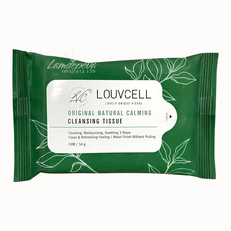 Khăn ướt tẩy trang Louv Cell Original Natural Calming Cleanser có công thức mạnh mẽ để làm sạch da, loại bỏ lớp trang điểm, nhưng vẫn cấp ẩm và cân bằng