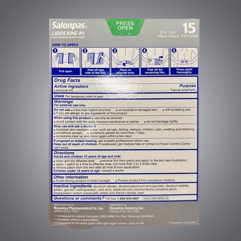 Miếng dán giảm đau Salonpas Lidocaine 4% Maximum Strength Hộp 15 miếng