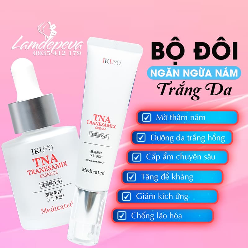 Combo serum và kem trị nám TNA Tranesamix Essence chính hãng Nhật đang được phân phối bởi đại lý Eva store. Chúng tôi cam kết chất lượng sản phẩm và mức giá cạnh tranh nhất thị trường. Dịch vụ ship tận nơi, được kiểm tra hàng trước khi thanh toán, đội ngũ tư vấn viên nhiệt tình.