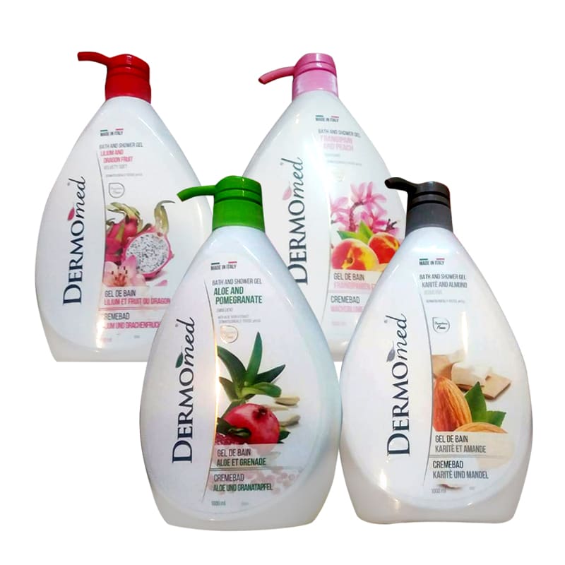 - Sữa tắm Dermomed 1000ml có nhiều loại, và tại Eva Store có 4 loại được ưa chuộng nhất là: Sữa tắm Dermomed hạnh nhân, táo, quả lựu và thanh long.