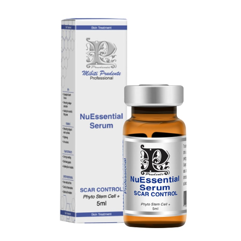 Tế bào gốc trị sẹo NuEssential Serum Scar Control được điều chế bởi các chuyên gia Mibiti Prudente nổi tiếng. Công thức tế bào gốc giàu peptide, acid amin, các yếu tố kích thích sản sinh collagen và elastin, để da căng, lấp đầy sẹo rỗ. Bên cạnh đó, hàng loại tinh chất thiên nhiên: rau má, rau sam, trà xanh, dâu tằm, nghệ,.. thúc đẩy tái tạo da, phục hồi tổn thương, đồng thời đẩy lùi các dấu hiệu lão hóa sớm.