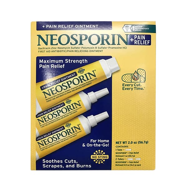 Thuốc mỡ Neosporin 3 pack là nhãn hiệu số 1 được chuyên gia khuyên dùng. Sản phẩm giúp giảm đau, chống nhiễm trùng cho các vết thương ngoài da, trầy xước do tai nạn, vết cắt nhỏ, vết côn trùng đốt, vết bỏng nhẹ.
