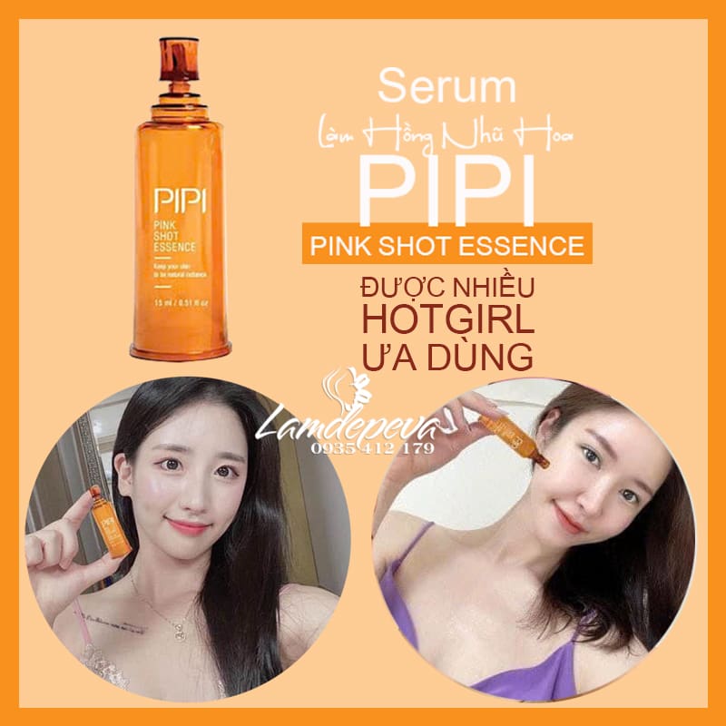 Tinh chất hồng nhũ hoa Pipi Pink Shot Essence là một sản phẩm nhận được rất nhiều lời khen trên các diễn đàn làm đẹp. Tinh chất serum Pipi có công thức độc quyền làm giảm sắc tố thâm, ngăn chặn melanin, dần dần làm hồng nhũ hoa một cách an toàn. Sản phẩm không gây kích ứng, đã qua kiểm nghiệm da liễu, yên râm khi sử dụng.