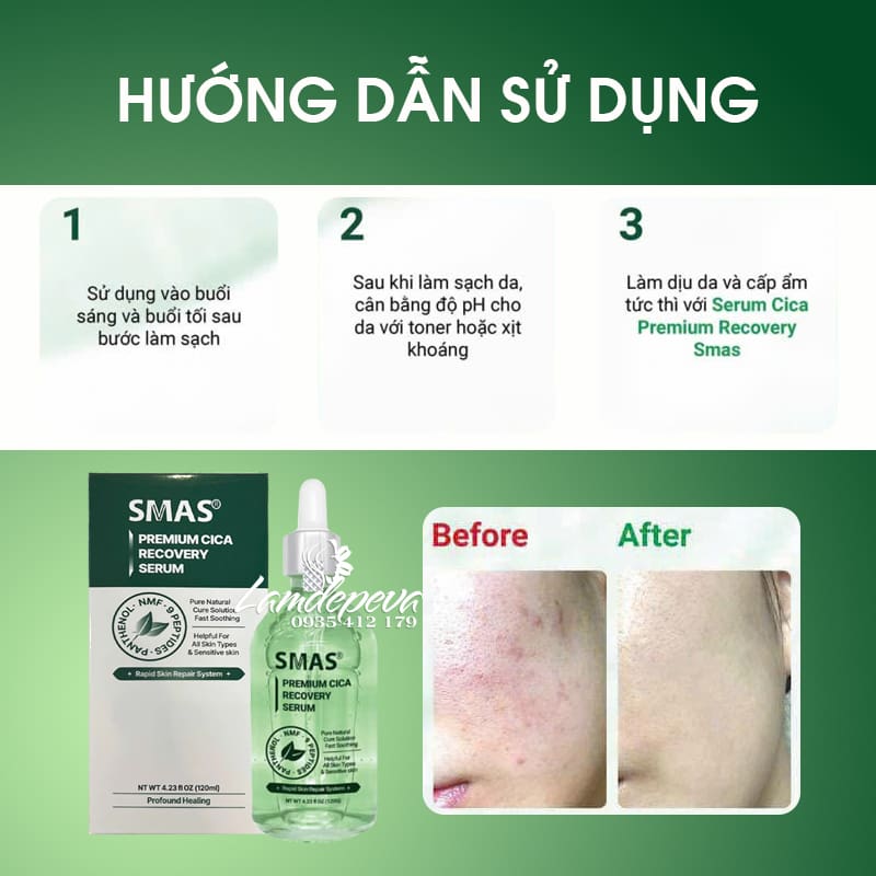 - Tinh chất rau má phục hồi da Smas Premium Cica Recovery chai 120ml chính hãng Hàn Quốc đã có mặt tại đại lý Eva Store. Chúng tôi luôn cam kết chất lượng sản phẩm đến tận tay quý khách hàng, kiểm tra trước khi nhận.