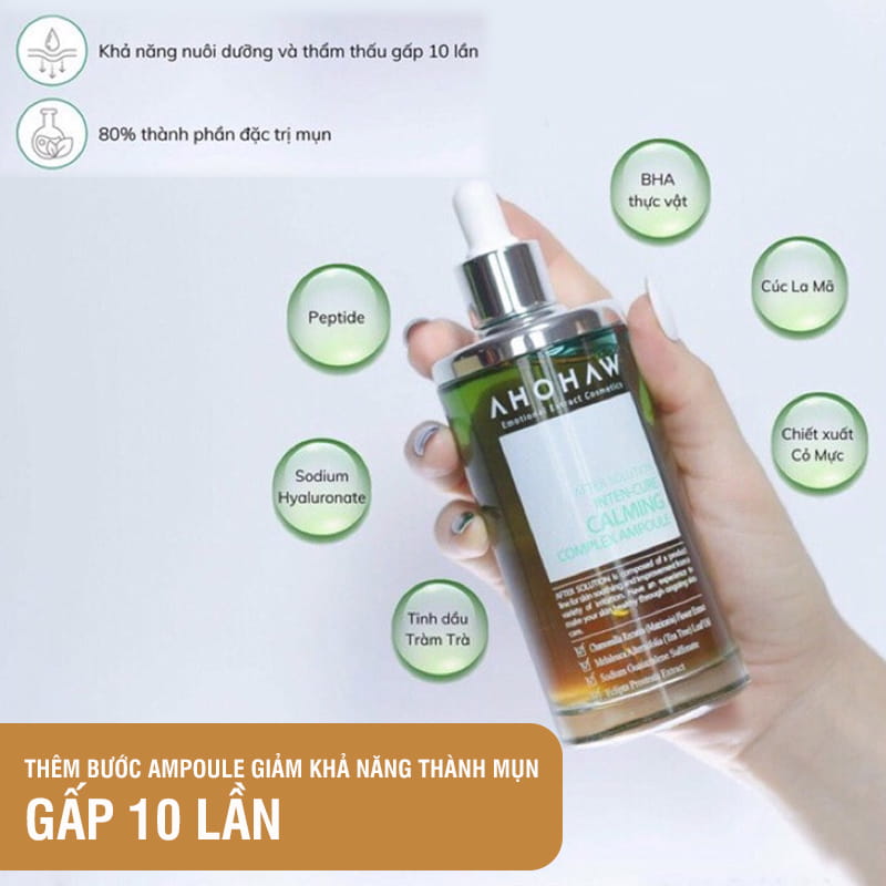 Nếu da bạn thuộc da dầu, da hỗn hợp, lỗ chân lông to, da nhạy cảm dễ nội mụn chưa tìm được sản phẩm chăm sóc da tối ưu thì hãy tham khảo ngay: Tinh chất phục hồi, giảm dầu mụn Ahohaw Calming của Hàn Quốc. Dòng dưỡng chuyên sâu giúp giảm đến 10 lần nguyên nhân gây ra mụn, đồng thời phục hồi thâm mụn, cân bằng làn da.