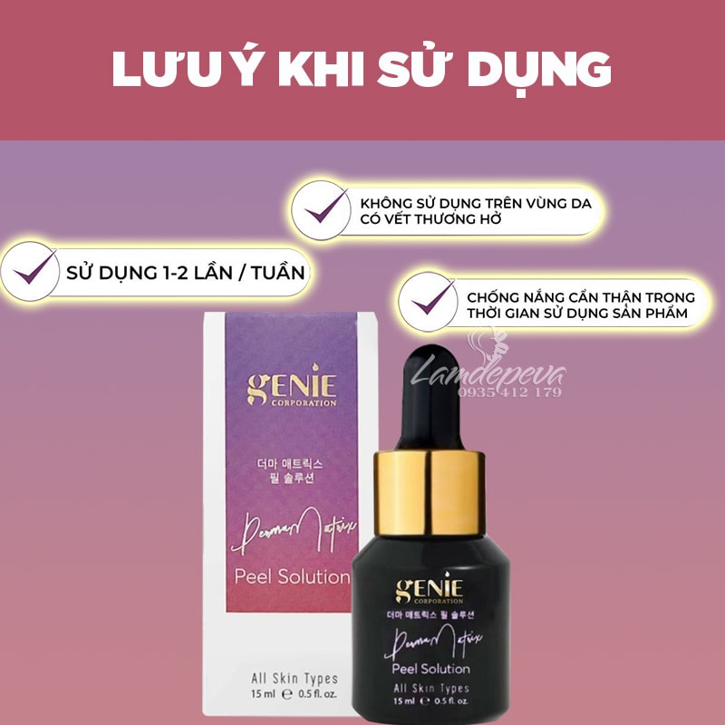 Tinh chất tái tạo da Genie Derma Matrix Peel Solution loại bỏ tế bào chết, thu nhỏ lỗ chân lông, giảm mụn hiệu quả, đồng thời giảm nếp nhăn và thâm nám, phục hồi da.