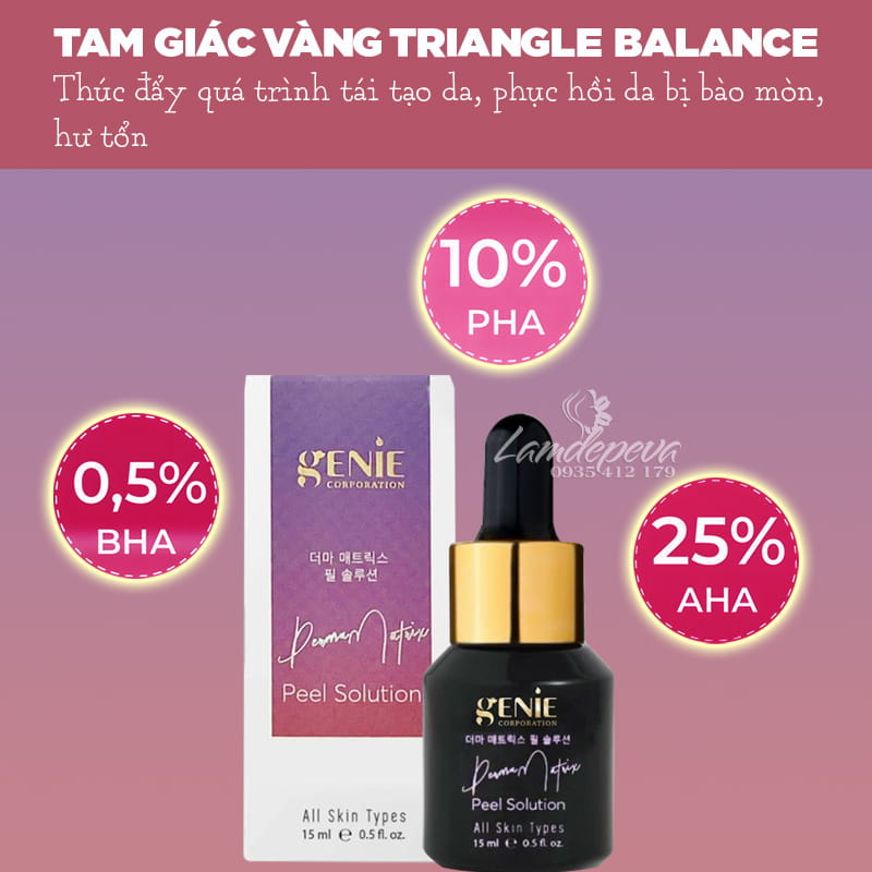 =>> Nếu bạn thuộc nhóm da nhạy cảm, khó lựa chọn dòng peel da an toàn, thì nên trải nghiệm thử tinh chất tái tạo da Genie Derma Matrix. Peel da là cách kích thích da tái tạo nhanh hơn, loại bỏ tế bào chết, sản sinh collagen để giúp da được rạng rỡ hơn. Ngoài ra, dùng peel da còn là cách để ngăn chặn mụn, thu nhỏ lỗ chân lông. Sản phẩm của Genie có công thức AHA kết hợp với BHA và PHA với tỷ lệ vàng, mang lại hiệu quả cao chỉ sau 3 tuần (*).