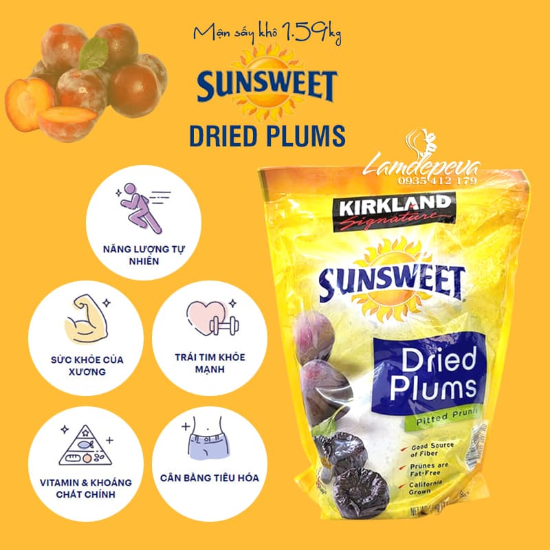 Mận sấy khô Kirkland Sunsweet Dried Plums 1.59kg của Mỹ - Thích hợp dùng trong dịp lễ Tết