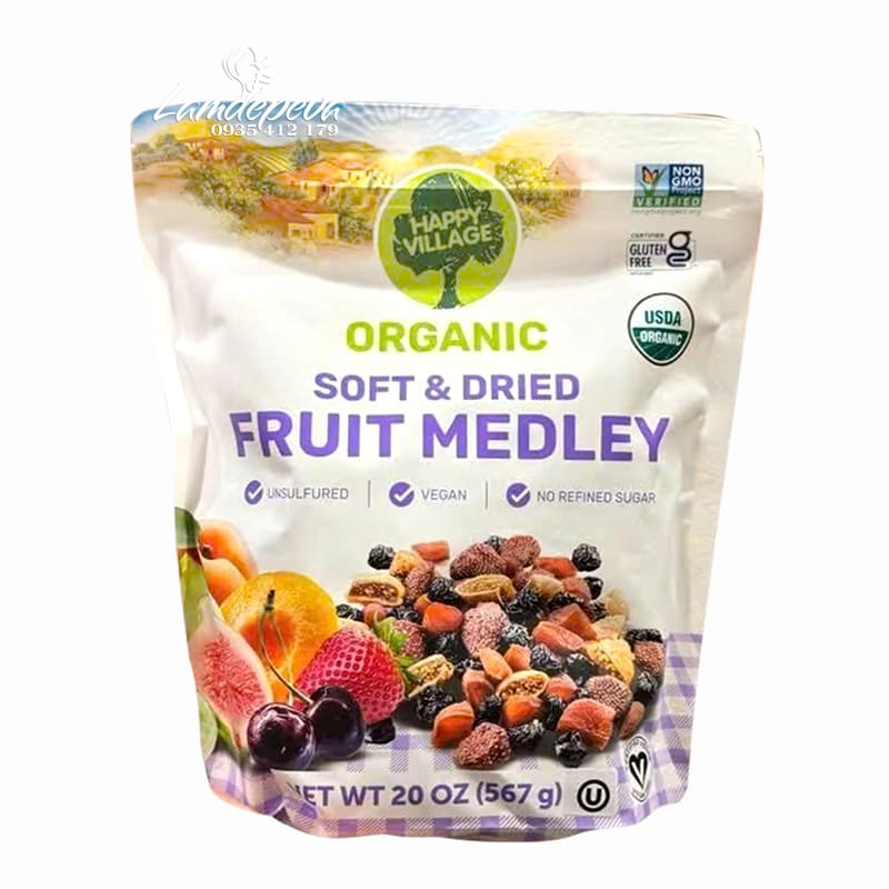 Trái cây sấy khô Organic Fruit Medley Happy Village 567g của Mỹ - Đạt chuẩn Organic USDA, chất lượng cao