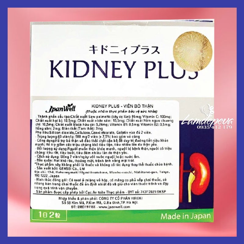 Với Kidney Plus, sản phẩm được Jpanwell - thương hiệu uy tín của Nhật Bản sản xuất. Quy trình sản xuất đạt chuẩn GMP, và không chứa các thành phần gây độc hại, yên tâm khi dùng. Dòng bổ thận này đã được bộ Y tế cấp phép lưu thông trên thị trường.