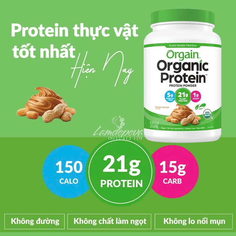 Bột Orgain Organic Protein 920g vị bơ đậu phộng của Mỹ - Tăng trưởng cơ bắp, cải thiện vóc dáng và sức khỏe