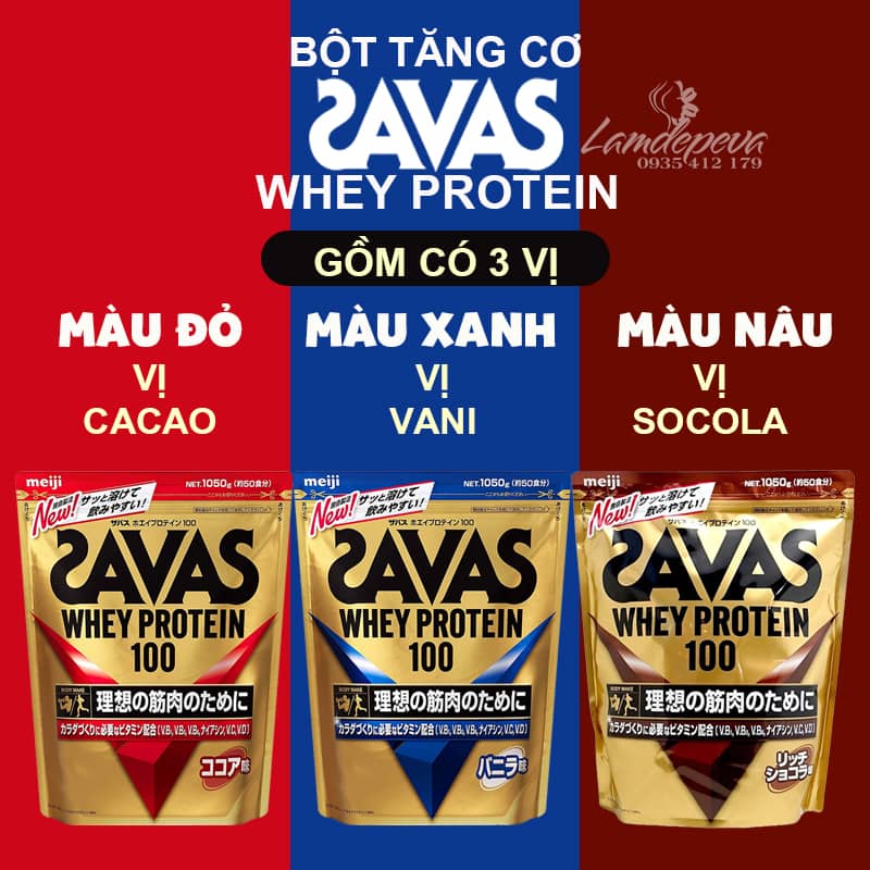 ➤Savas Whey Protein 980g của Nhật tại Eva Store có 3 hương vị: vani, socola, cacao.