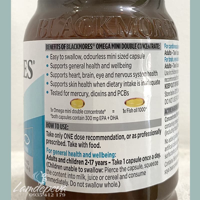 ✔ Dầu cá của Blackmores tinh khiết, không chứa kim loại nặng, thủy ngân, hay các chất hóa học khác gây hại cho sức khỏe. Sử dụng dầu cá cho bà bầu hay trẻ em trên 2 tuổi đều được.