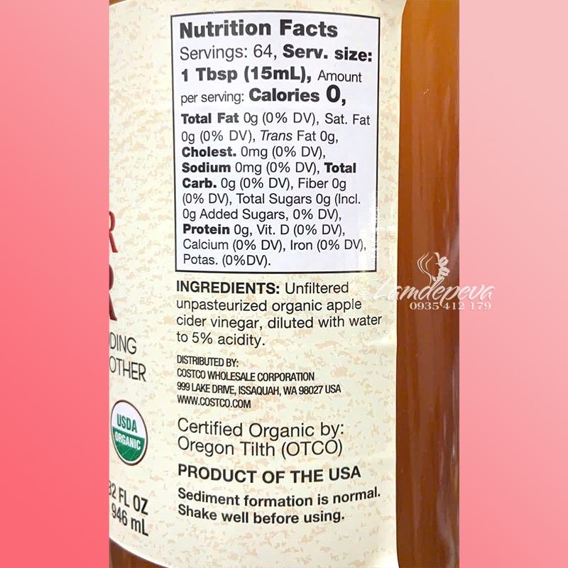 Liên hệ hotline để được chúng tôi tư vấn trực tiếp nhé. Hoặc đặt ngay tại link gốc đại lý để nhận ưu đãi: Giấm táo hữu cơ Kirkland
