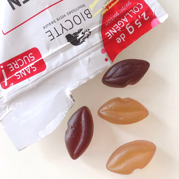 - Nhai 3 viên kẹo dẻo collagen mỗi ngày.