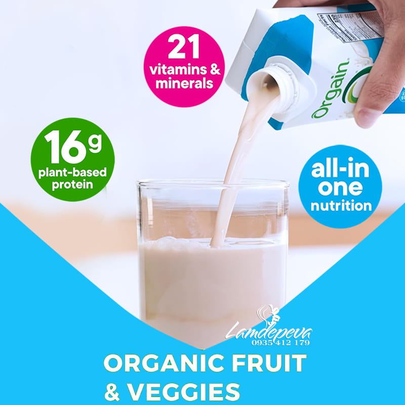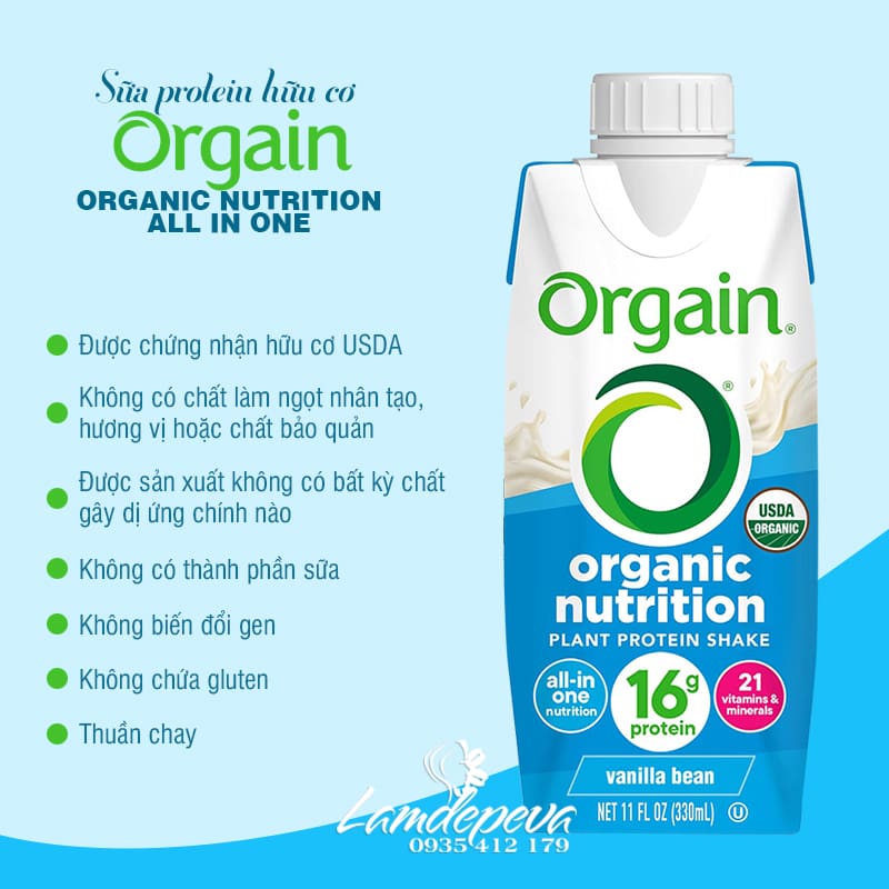 Orgain Organic Nutrition là thức uống bổ sung dinh dưỡng của thương hiệu Orgain uy tín từ Mỹ. Mỗi hộp sữa Orgain bổ sung đến 16g protein từ thực vật (các loại đậu, hạt) cùng với 21 vi khoáng chất từ các loại rau củ. Thức uống giàu dinh dưỡng này hỗ trợ sức khỏe, hệ miễn dịch và hỗ trợ cho cơ bắp phát triển.