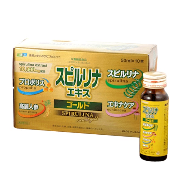 ✔ Tảo vàng EX Spirulina của nhà sản xuất DIC cung cấp 10000mg tinh chất tảo tươi cùng keo ong, nhân sâm và thảo dược Echinacea.