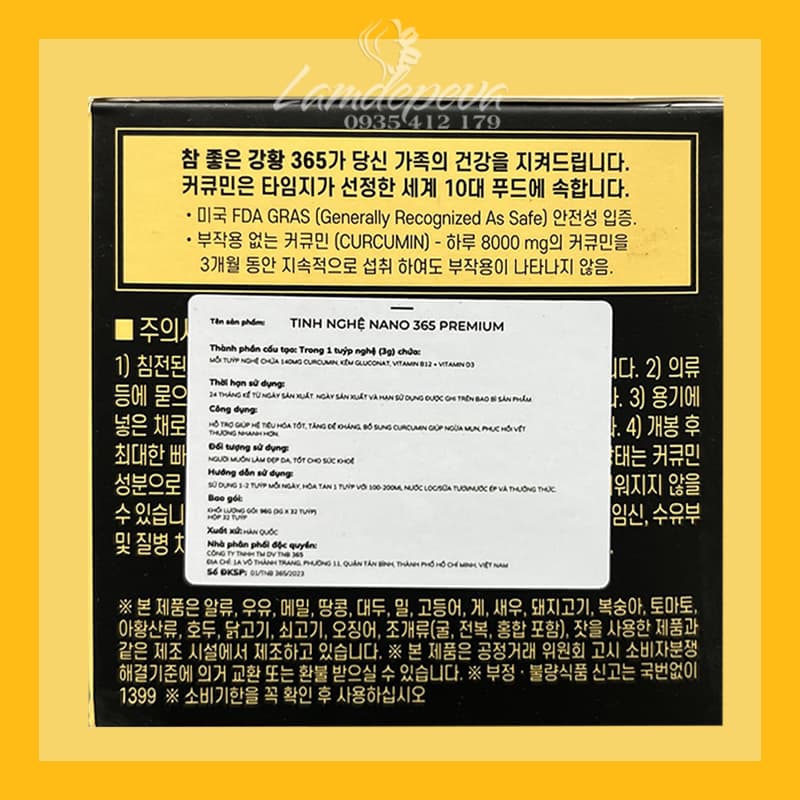 - Tinh nghệ Nano 365 Premium đang được hàng triệu bà mẹ sau sinh lựa chọn để chăm sóc sức khỏe và làm đẹp. Không chỉ vậy, tinh nghệ còn là liệu pháp chăm sóc sức khỏe cho mọi đối tượng bằng sức mạnh Curcumin hàm lượng lớn, phân tử siêu nhỏ.