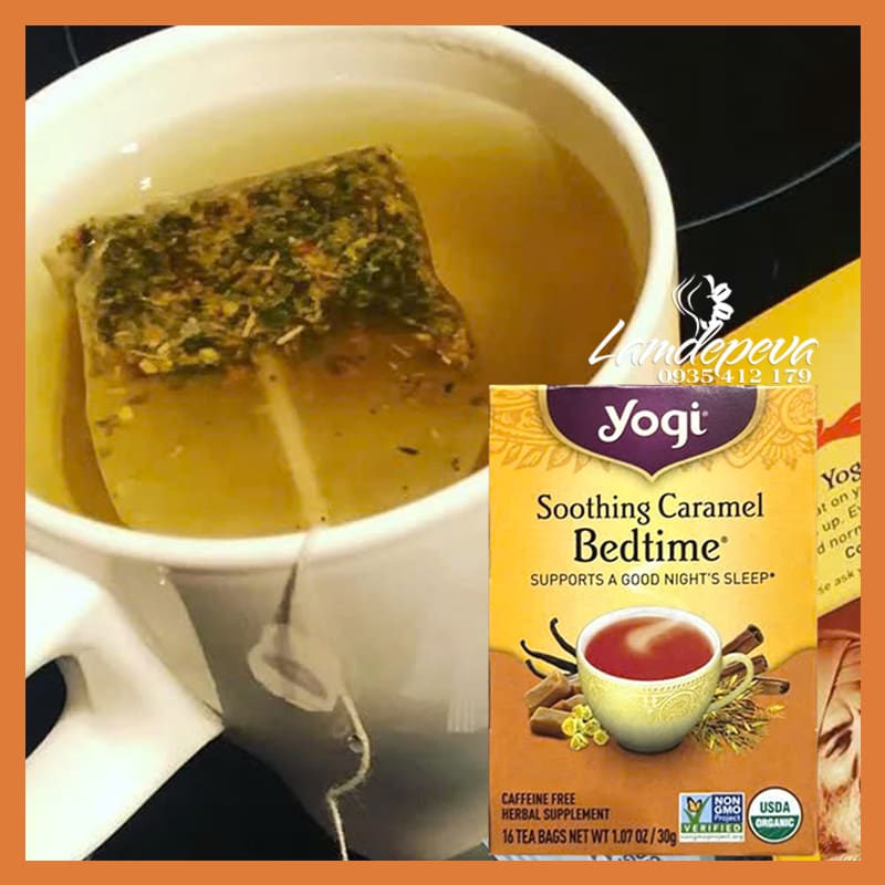 Trà ngủ ngon Yogi Soothing Caramel Bedtime Supports A Good Night’s Sleep hộp 16 gói của Mỹ - Thành phần thảo mộc thiên nhiên, hiệu quả cao