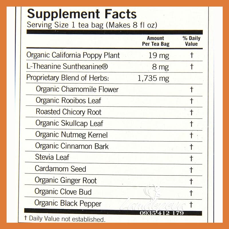 ✔ Trà thảo mộc Yogi Bedtime có khả năng làm dịu thần kinh, giảm căng thẳng stress cực kỳ tốt. Đặc biệt, Theanine, hoa cúc có tác dụng rõ rệt an thần và chống trầm cảm.