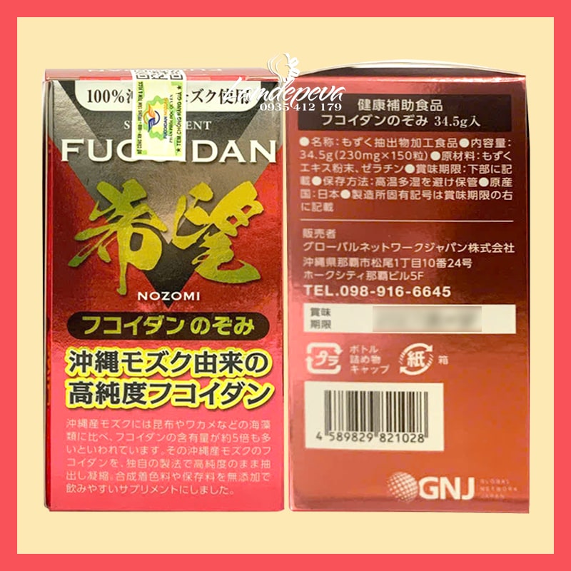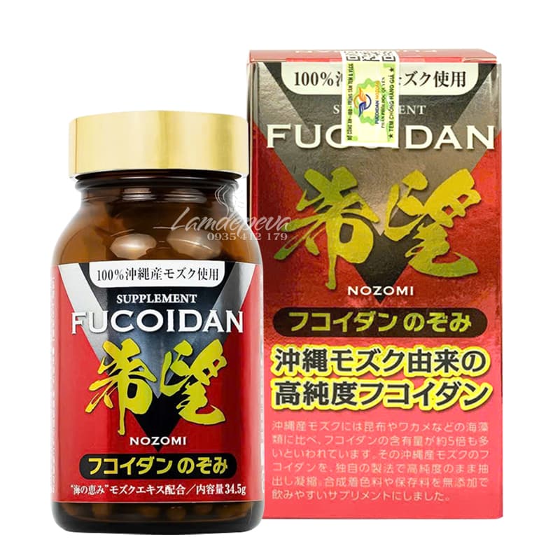 Viên nang tảo Fucoidan Nozomi GNJ của Nhật Bản mẫu mới hộp 150 viên- Hàng có tem chính hãng, nhận kèm phiếu mua hàng cực xịn