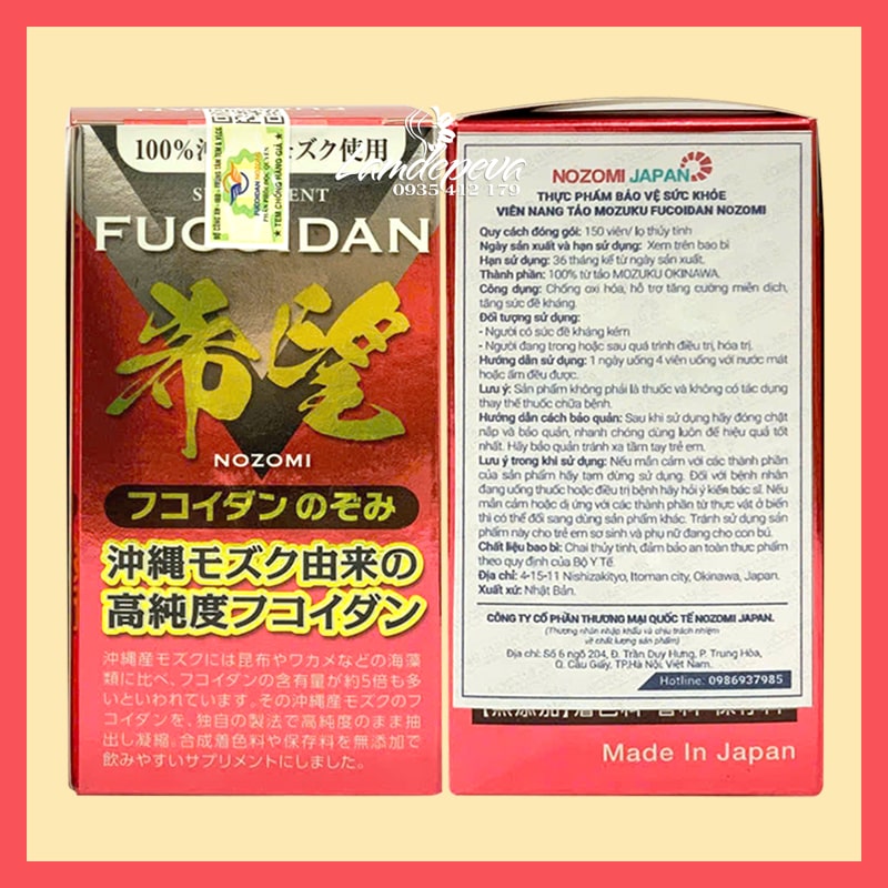 Viên nang tảo Fucoidan Nozomi của Nhật Bản là hàng được nhập khẩu chính ngạch, có tem nhãn phụ Tiếng Việt và đã qua kiểm duyệt của bộ Y tế, yên tâm khi lựa chọn. Nhưng trên thị trường không ít nơi có hàng fake, kém chất lượng, rất khó phân biệt, bạn nên mua ở những nơi uy tín, tránh tiền mất tật mang.