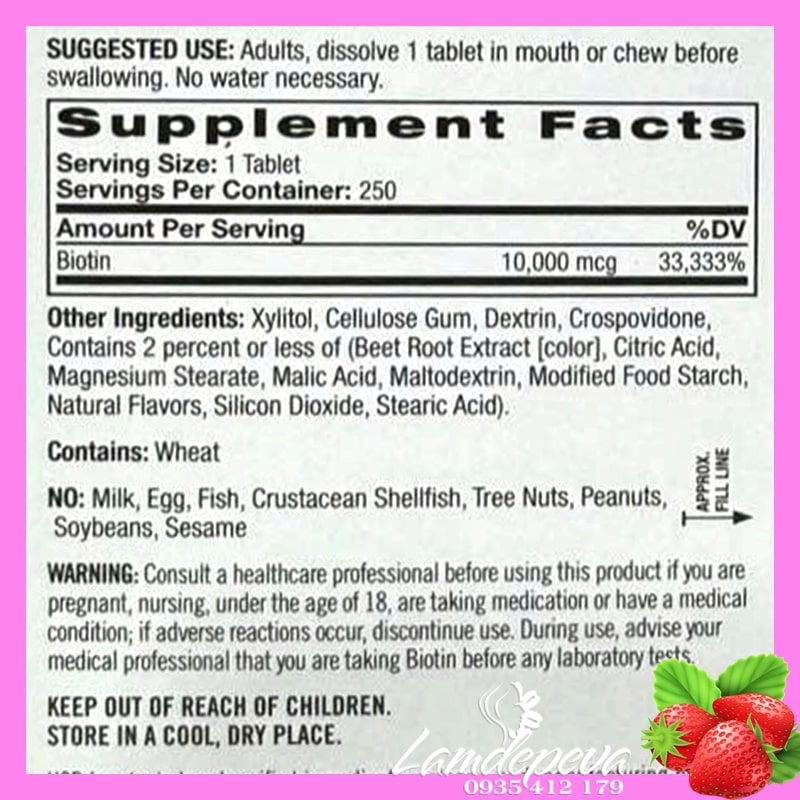 Viên ngậm Natrol Biotin 10000mcg vị dâu dễ bổ sung và mang hiệu quả nhanh gấp 4 lần.