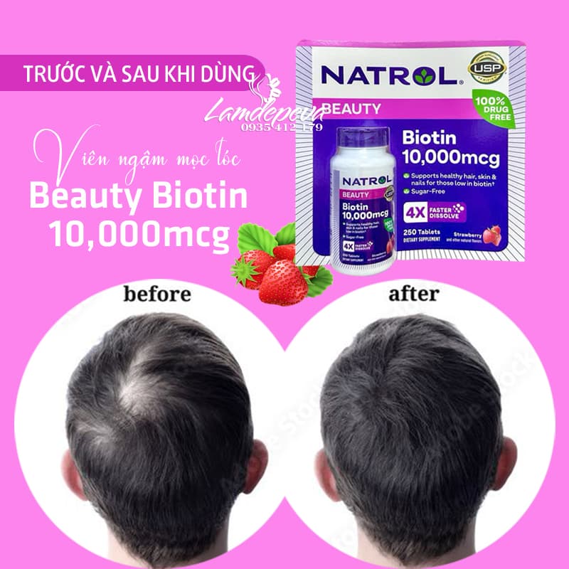 Sản phẩm bổ sung biotin kích thích tóc mọc nhanh và dày, cải thiện tình trạng tóc yếu, gãy rụng và hói đầu.