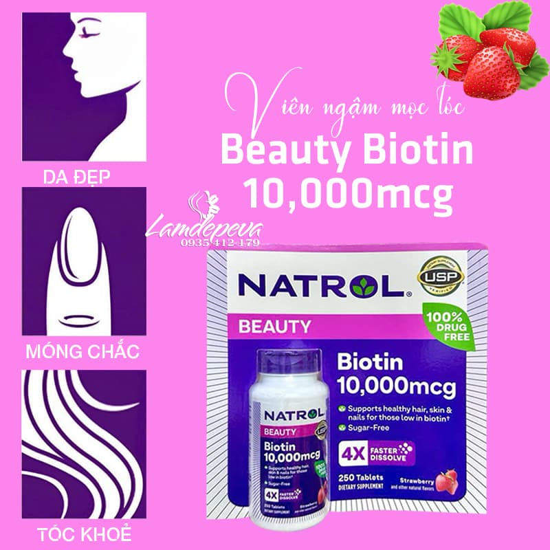 Công dụng của viên ngậm Natrol Biotin 10000mcg chính hãng: