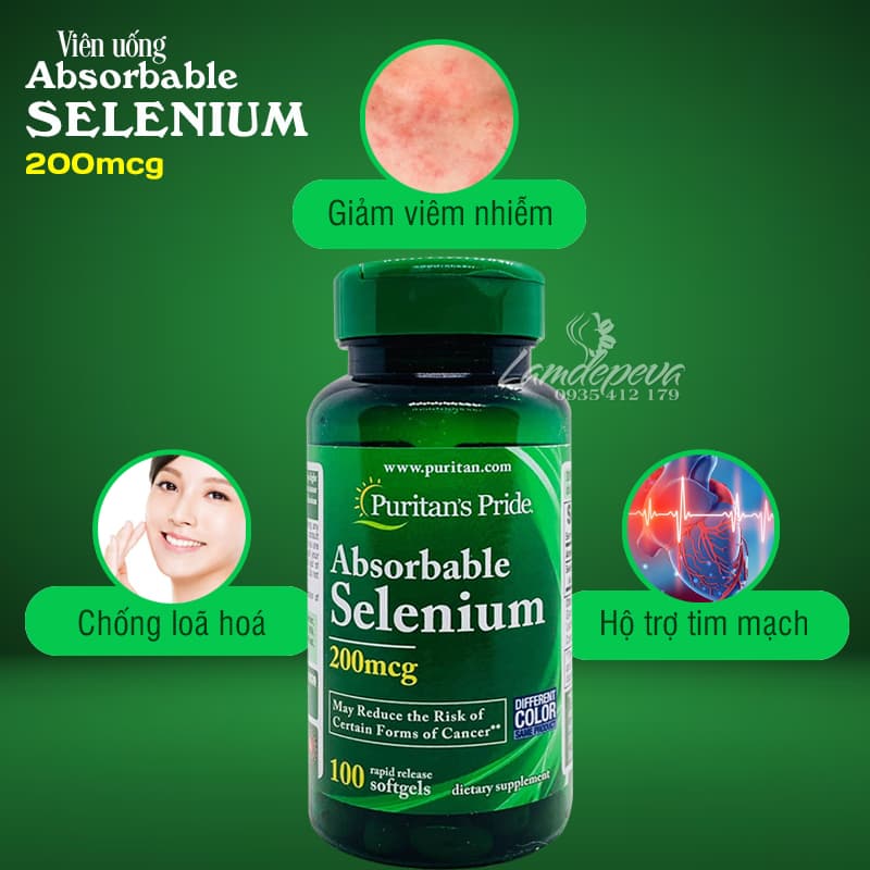 Viên uống Absorbable Selenium 200mcgđược điều chế an toàn trên quy trình hiện đại. Viên nang bổ sung selen - một khoáng chất cần thiết làm tăng cường miễn dịch, phòng ngừa ung_thư, cải thiện cholesterol, bảo vệ tim mạch,...