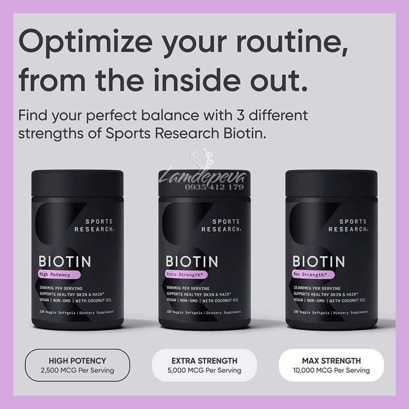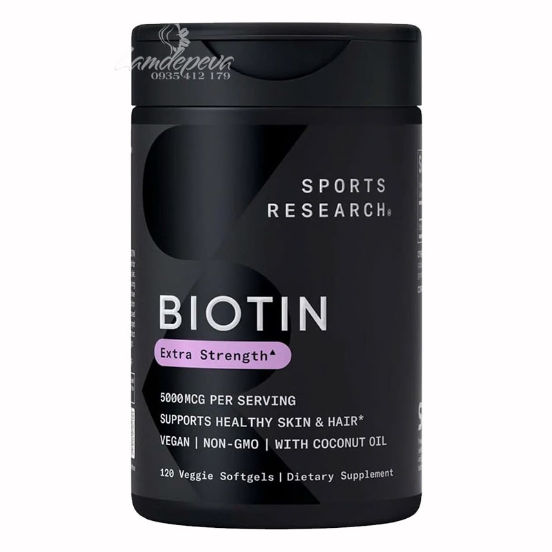 =>> Viên nang hỗ trợ tóc, da, móng Biotin Extra Strength 5000mcg Sports Research được yêu thích hiện nay. Bạn có thể đặt mua hàng chính hãng tại đại lý Eva Store. Chúng tôi luôn cam kết hàng có bill mua trực tiếp từ nước ngoài, mức giá sỉ lẻ cạnh tranh.