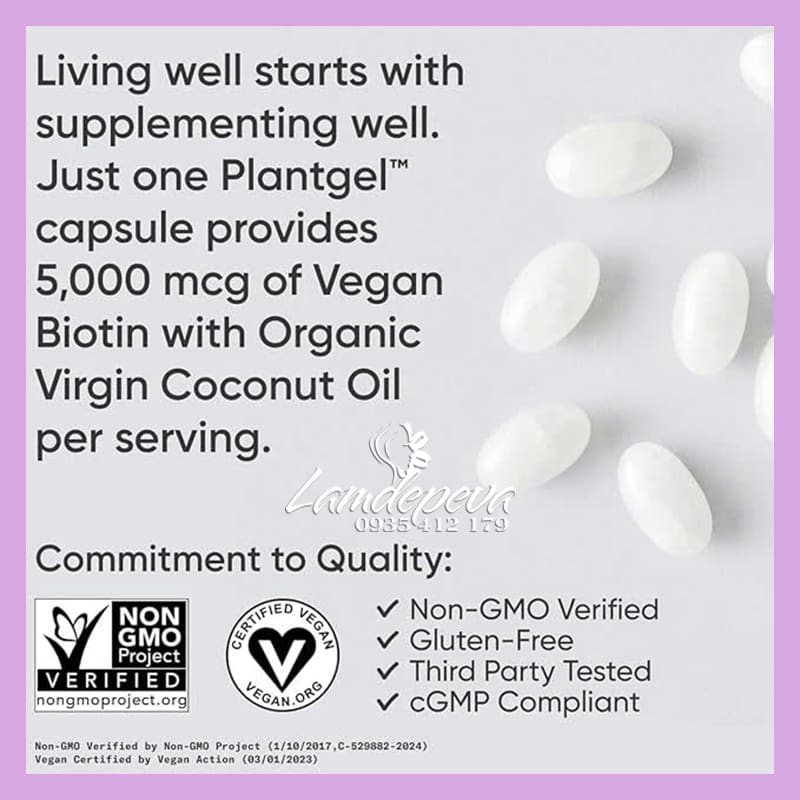 Biotin Extra Strength 5000mcg SR được điều chế dưới dạng viên nang thuần chay, đạt chuẩn hữu cơ, chất lượng cao.