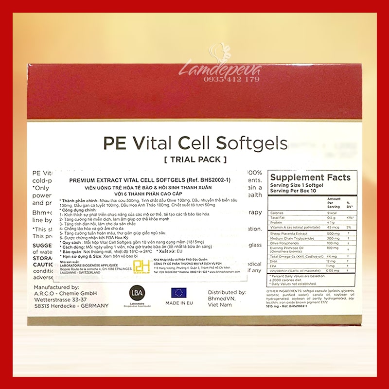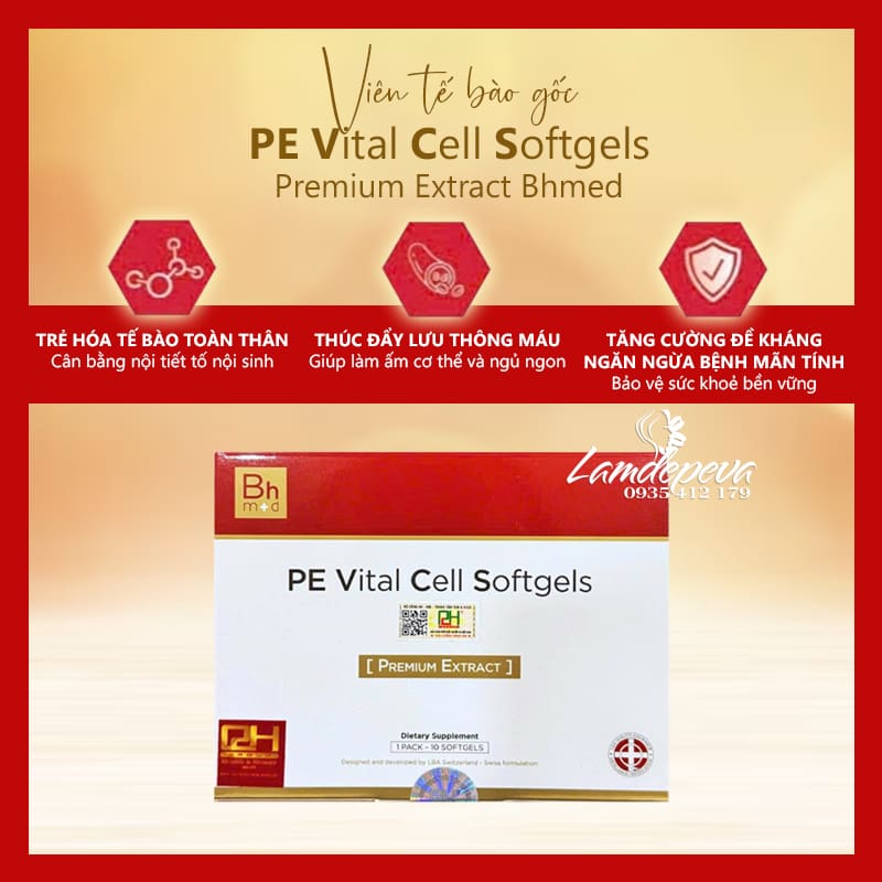Viên uống tế bào gốc PE Vital Cell Softgels cao cấp được mệnh danh là “viên uống thanh xuân” bởi công thức độc quyền từ tế bào gốc nhau thai cừu tinh khiết cùng 5 thành phần quý giá từ thiên nhiên giúp trẻ hóa tế bào, chống lão hóa toàn diện, cải thiện sức khỏe, nội tiết, sinh lý.