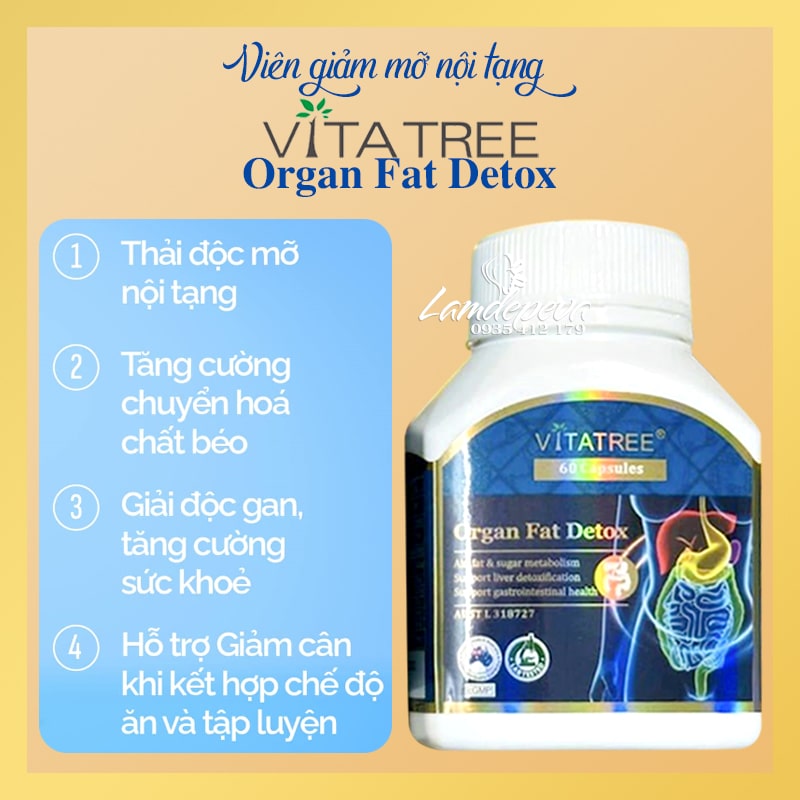 Viên uống thải độc mỡ nội tạng Vitatree Organ Fat Detox của Úc hộp 60 viên - Hàng Nhập khẩu chính hãng, yên tâm về chất lượng