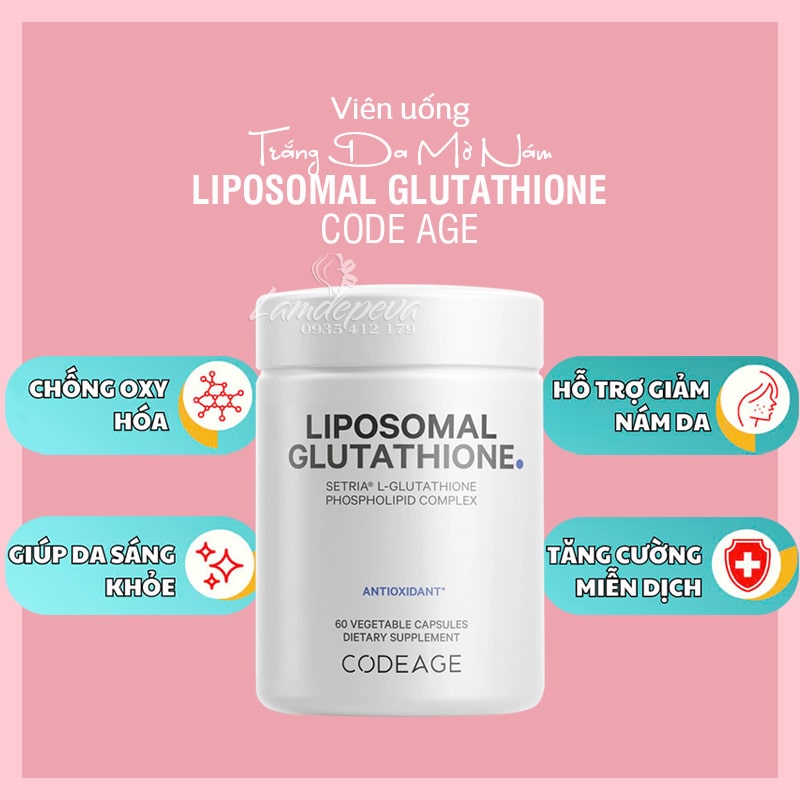 Eva Store cam kết phân phối Viên uống trắng da Liposomal Glutathione Code Age chính hãng từ Mỹ, có bill trực tiếp. Hàng luôn có date mới, giá cả cạnh tranh, ship toàn quốc, được kiểm hàng trước nhận.