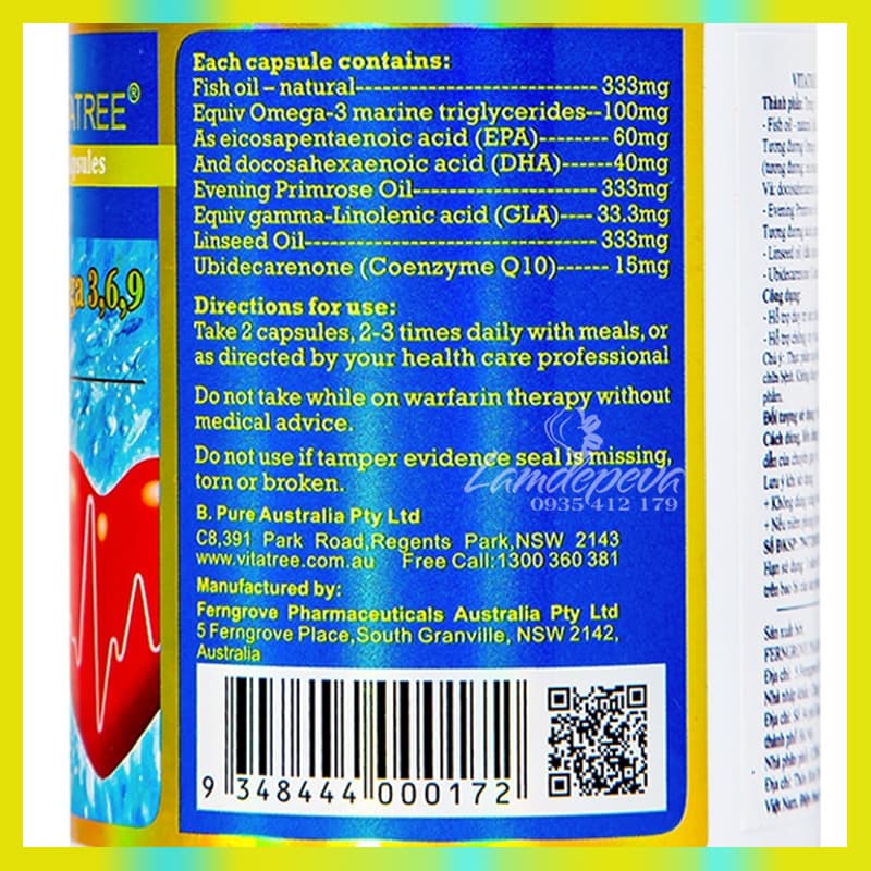 Viên uống bổ tim Vitatree Mega Omega 3 6 9 Plus Q10 của Úc được yêu thích tại nhiều nước trên Thế giới. Bạn có thể tìm mua tại nhà thuốc, hoặc ghé đại lý Eva Store. Chúng tôi cam kết chất lượng sản phẩm chính hãng, có bill mua trực tiếp.